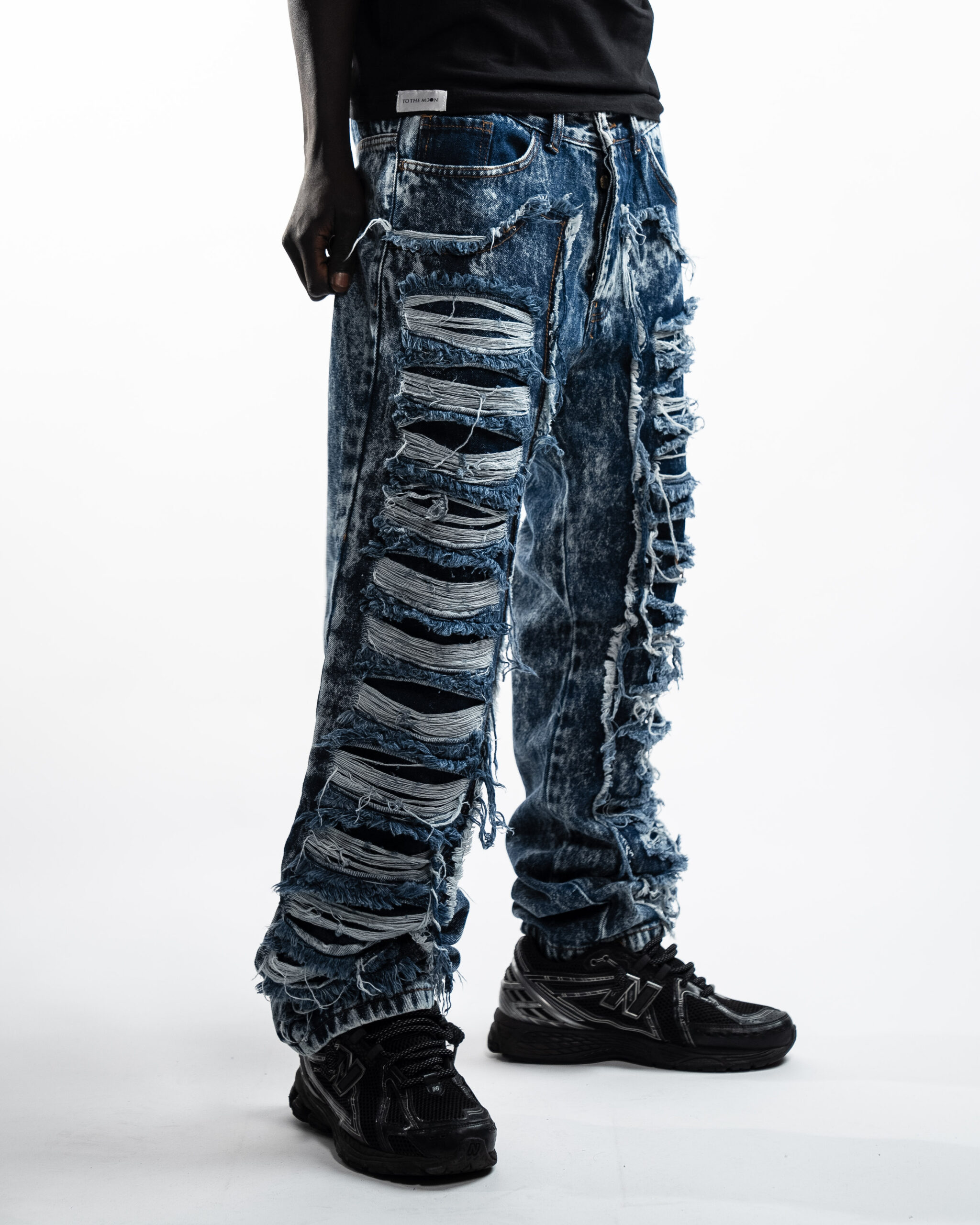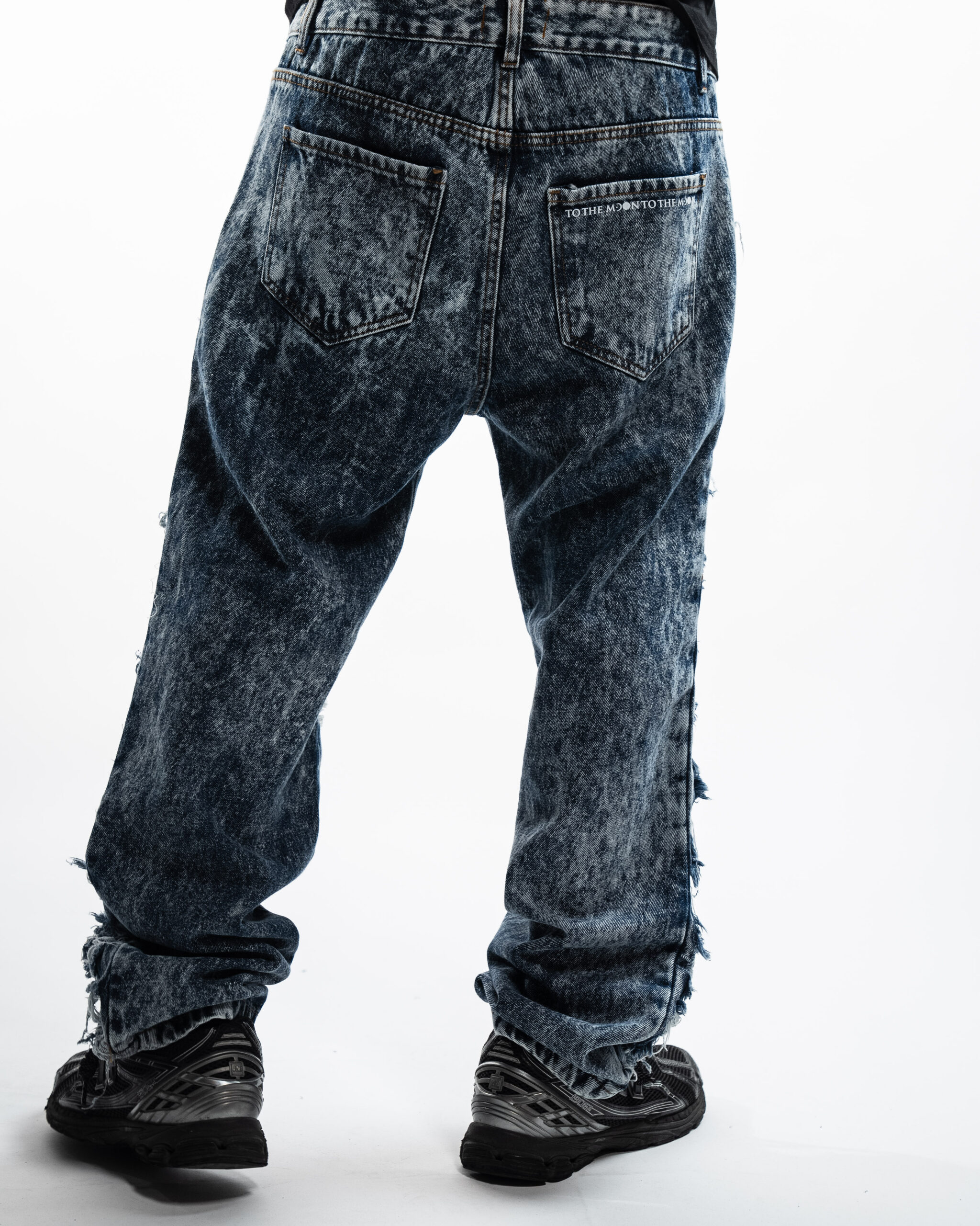 I jeans “Alfa” di To The Moon offrono un look audace e grintoso, realizzati al 100% in cotone per garantire comfort e resistenza. Caratterizzati da ampi strappi lungo le gambe, questi jeans conferiscono un’estetica urbana e disinvolta. Il logo TTM è finemente ricamato sulla tasca anteriore, mentre la scritta To The Moon sul retro aggiunge un tocco esclusivo che richiama l’identità del brand.