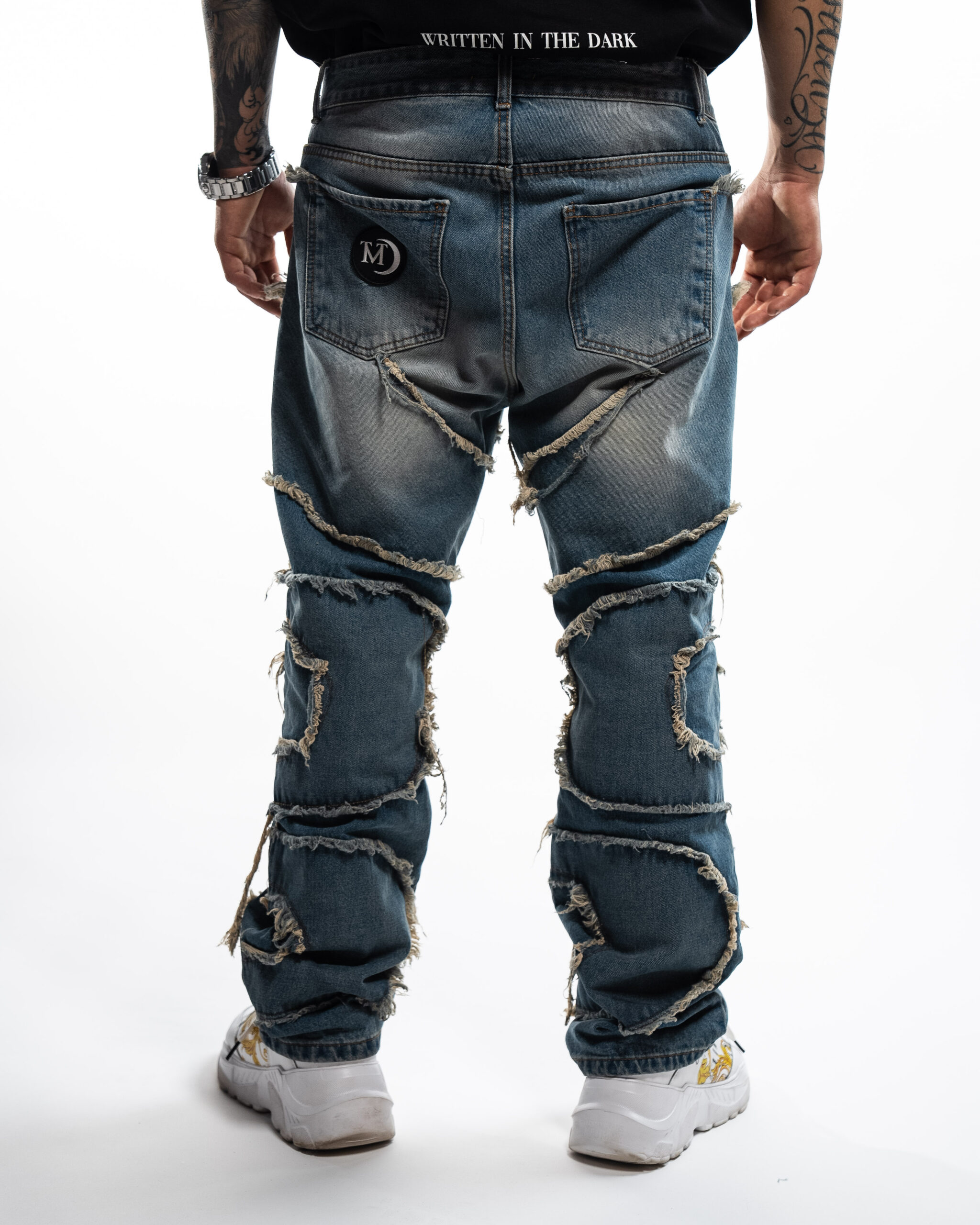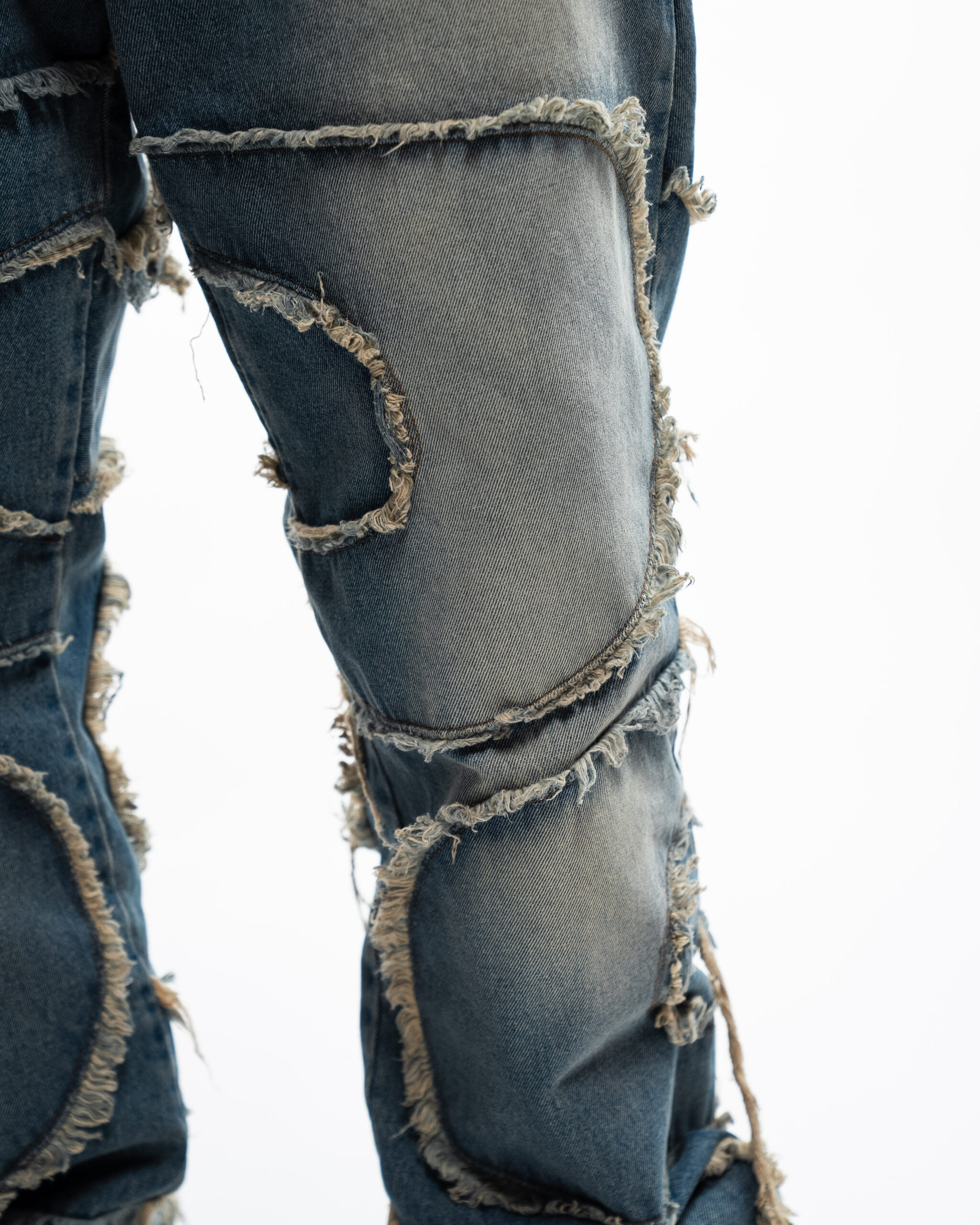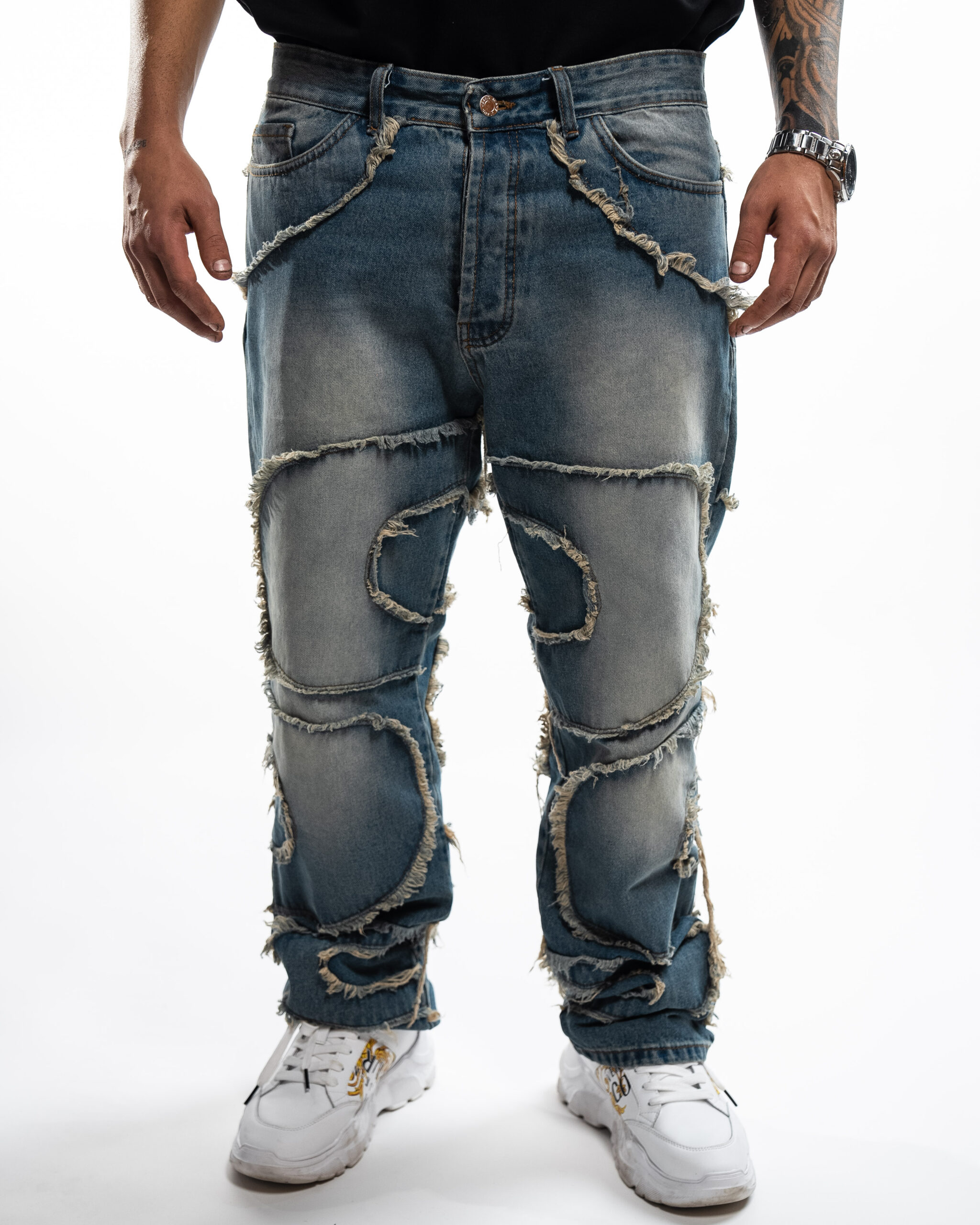 Jeans in denim chiaro dal vibe unico, con cuciture sfilacciate che disegnano linee bold su tutta la gamba.
